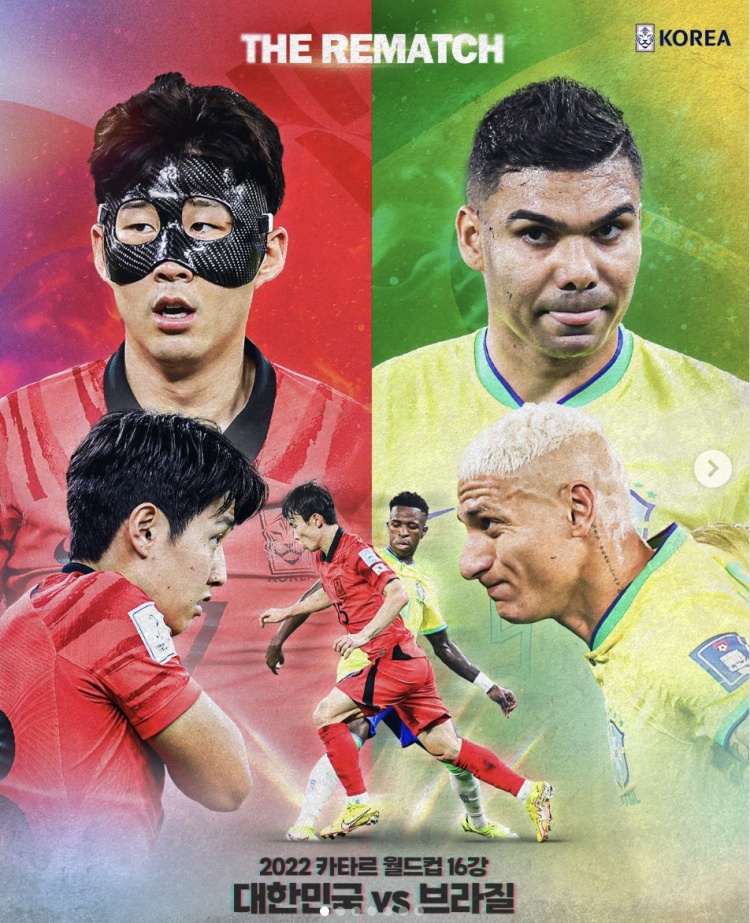 韩国队交手巴西队海报:孙兴慜、李刚仁、维尼修斯、卡塞米罗出镜